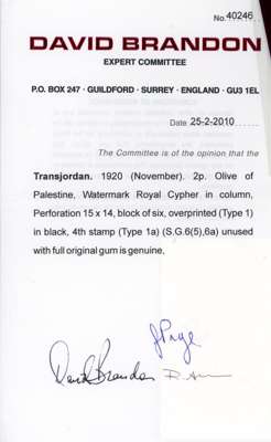 Transjordan 1920 mint range