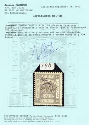 Transjordan 1922 20p on 20p pale grey perf 14 type 3 surch in black