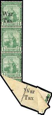 Trinidad and Tobago 1918 War Tax ½d error overprint omitted