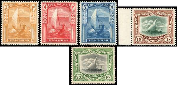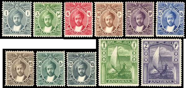 Zanzibar 1913 set of 16 to 20r watermark multiple rosettes