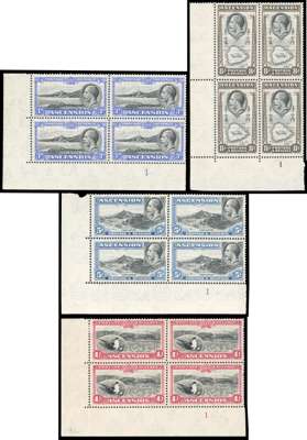1934 ½d to 5s complete set in PLATE BLOCKS of four, large part o.g., the vast majority unmounted. A couple of trivial gum bends not affecting fine fresh appearance. Exceptional and very scarce. S.G. 21/30 cat £520+