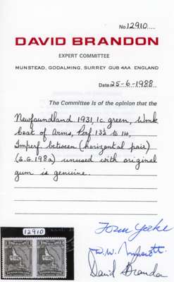 1931 'Publicity' issue 1c Green IMPERFORATE BETWEEN pair, fresh and fine large part o.g. Brandon cert (1988) S.G. 198a cat £750 mint