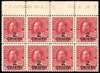 1926 2c on 3c carmine, type 50 surcharge, with separate surcharge showing error DOUBLE (partially triple), offered with upper marginal block of 8 (4x2) with "T-7-OTTAWA-No-A 115 944 A T" imprint, all fine large part o.g. A super trio for the specialist. S.G. 265, 265a cat £380++