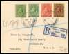 1929 (MR 5) registered cover from South Shetlands to England, franked by 1921-28 ½d (2 - yellowish green and (unlisted) green shades), 1d, and 2½d deep purple/pale yellow, tied by two strikes of type B2 cds with Falkland Islands registration label (applied in transit at Port Stanley) below. Backstamped at Port Stanley (30 AP) and Liverpool (27 MY). A very fine and neat cover, and very scarce.