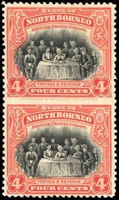 North Borneo 1925-28 4c perf 12½ vertical pair imperf between
