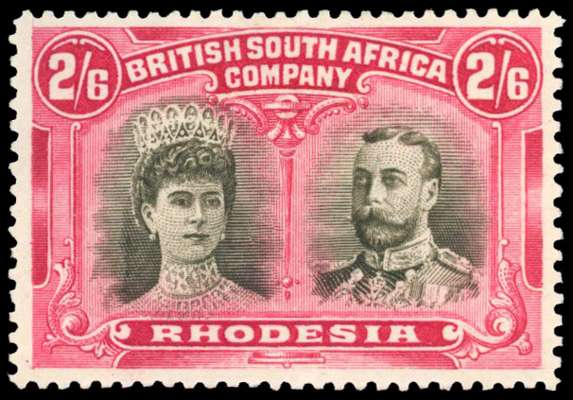 Rhodesia 1910-13 2s6d black and rose-carmine perf 14