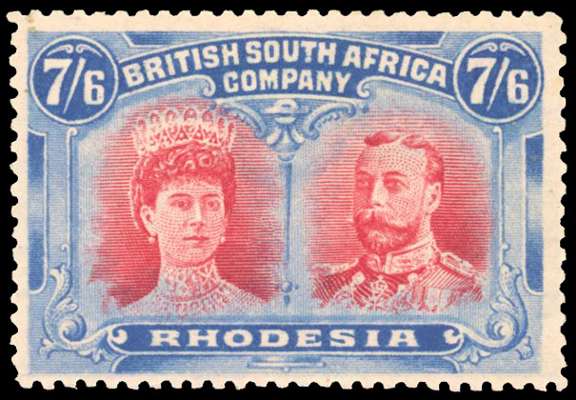 Rhodesia 1910-13 7s6d carmine and bright blue perf 14