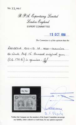 1910-13 1d rose-carmine ‘Double Heads’, perf 15, fresh and fine, o.g. BPA cert (1990). SG 170b, cat £350