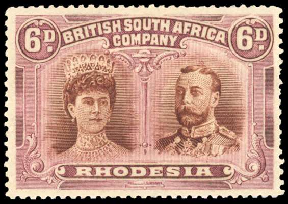 Rhodesia 1910-13 6d brown and mauve perf 15