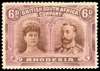 1910-13 6d brown and mauve ‘Double Heads’, perf 15, large part o.g., a few short perfs still attractive and very scarce. SG 176, cat £850