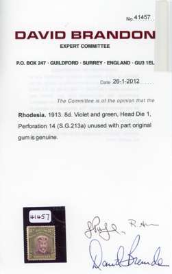 Rhodesia 1913-19 8d violet and green die I perf 14