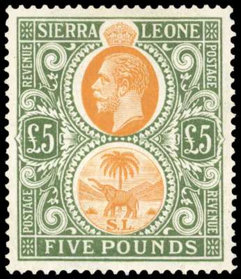 Sierra Leone 1921-27 £5 orange and green Script watermark