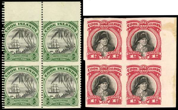 1932 selection comprising ½d block of four, imperforate horizontally and showing double perfs at left, 1d horizontal pair, variety perf compound of 13 and 14, 1d horizontal pair imperforate between, and 1d imperforate block of 4, unmounted o.g., the 1d compound perf pair with minor gum toning otherwise a fine and interesting group. SG 99 var, 100b, cat £1075+