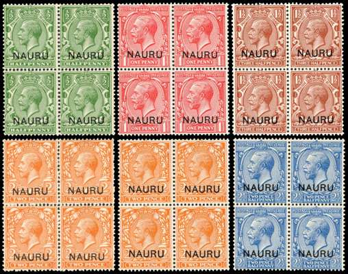 Nauru 1916-23 set of 12 to 1s blocks of 4