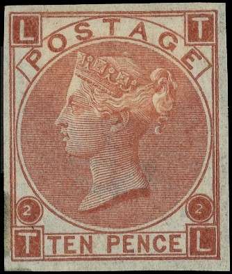 1867 10d Red brown Pl.2. ‘abnormal’. Unused o.g. imperforate imprimatur of this rare "abnormal" issue lettered TL. Rare one of only 24 possible examples, many of which are in institutional collections. Cat £20,000.