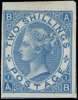 1867 2s Pale blue Pl.1. Unused o.g. imperforate example lettered AB. A wonderful Victorian variety of the utmost rarity. Cat £22,000.
