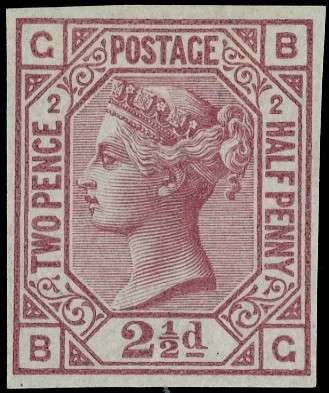 1875 2½d Rosy mauve Pl.2. Unused o.g. imperforate imprimatur lettered BG. Very rare, one of only 25 possible examples, many of which are in institutional collections. Cat £2500.