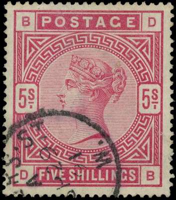 Great Britain 1883-84 5/- crimson used wmk inverted SG 180Wi