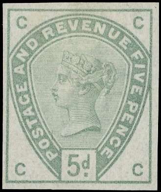 1883-84 5d dull green imperforate, large part o.g. fine and scarce. SG 193a, £4500
