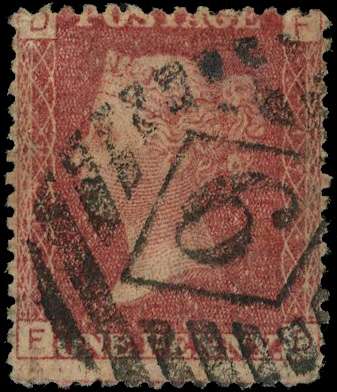 1867 Copestake, Hughes, Crampton & Co London unofficial underprint type 19 on 1d rose-red Plate 174 (FD) showing VARIETY UNDERPRINT DOUBLED, used by numeral mark, peripheral wear, otherwise fine, scarce. Spec. PP70b