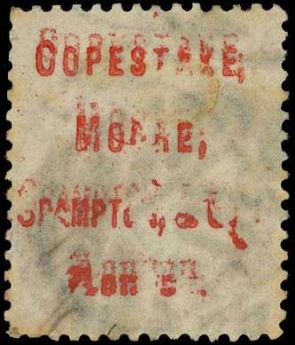 Great Britain 1867 Copestake, Moore, Crampton & Co London unofficial underprint type 16 in red PP58a