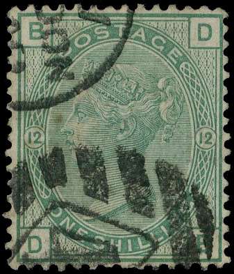 1867 Copestake, Moore, Crampton & Co London official underprint DLR type 15 on 1/- green Plate 12 (DB), with variety UNDERPRINT INVERTED, used by London duplex, odd blemishes, still largely fine and rare. Spec. PP45a, £2000