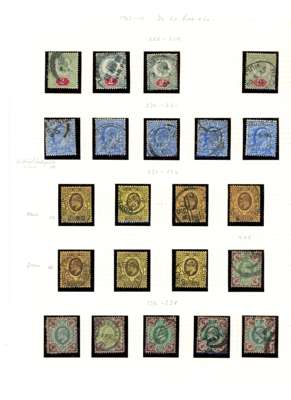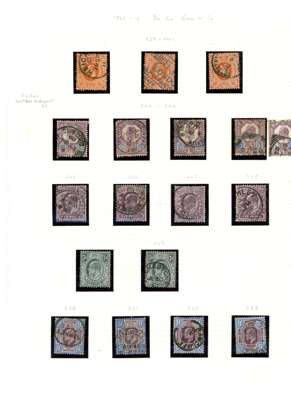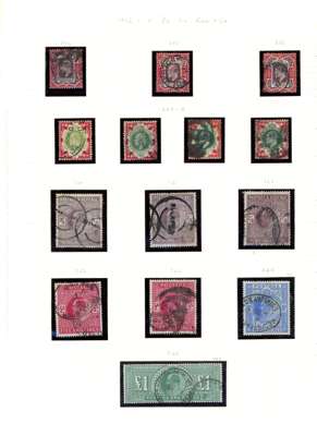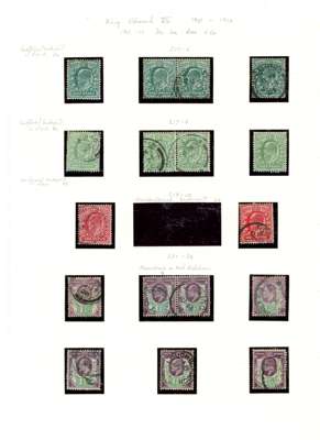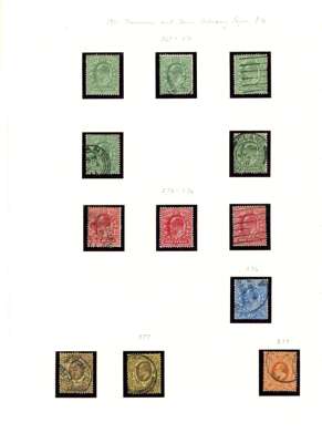 1902-1952 Four Kings, mint and used collection housed in an album, including: 1902-10 DLR printings to £1 with selected shades and examples on cover, 1911-13 Somerset House printings, similarly represented, some Officials, 1910-12 Downey Heads with ½d green error perf 14 (RPSL Cert 1975), 1d carmine Die B var no wmk, 1912-24 Simple Cypher to 1/- noted vars, 1913 Seahorses with £1 green and £1 dull blue-green, 1915 DLR printing to 10/- with 10/- blue used block of four, 1919 Bradbury printings, 1924-26 Block Cypher, with covers, 1929 PUC £1 black, KGVI issues with high values and RSW £1, mixed condition with fine.