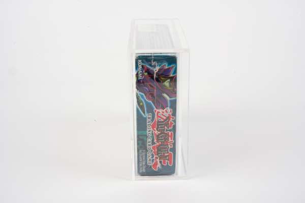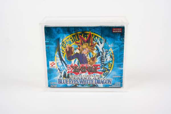 A sealed YuGiOh Legend of the Blue Eyes White Dragon For Europe 1st Edition Booster Box. On the bottom of this box there is a numbered sticker (12546), showing how early this box was in the printing cycle.