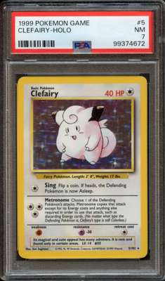 This Clefairy Holo #5 from Base Set has been graded and authenticated by PSA, scoring a Near-Mint 7.