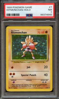 This Hitmonchan holo #7 from Base Set has been graded and authenticated by PSA, scoring a Near-Mint 7.