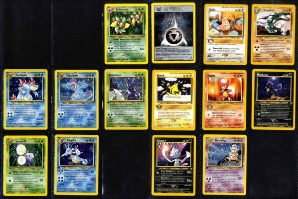 This lot contains a partially complete Neo Genesis set with 15 holo cards present. Conditions of the hollows are as follows: