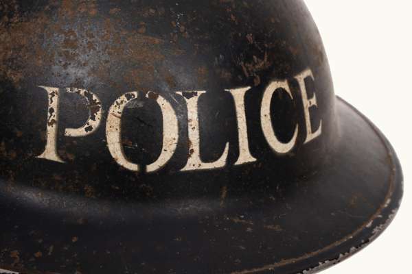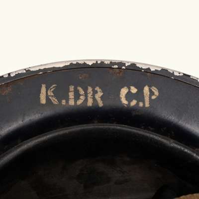 WWII Home Front Steel Helmet Police Issue dated 1939 Painted Inscription K.DR CP complete with liner and chin strap