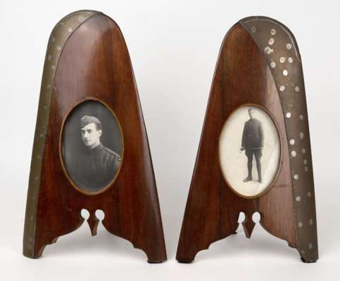 WWI R.A.F. Propeller Hub Clock with two complementary propeller tip photograph frames