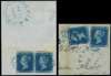 1841 2d Blue Pl.3 & Pl.4. two pieces blue numerals
