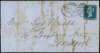 1841 2d Blue Pl.4 (AE). Entire sent from Plymouth to London bearing a four margin 2d Blue Pl.4. tied by a superb strike of a Plymouth “620” Spoon cancellation for AU.1.1854. (Type I, code D). Rare cancellation on this issue. SG14, Spec. ES14.