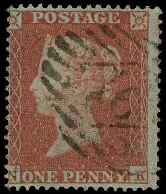 1850 1d Red brown “Archer“ Pl.92. Used example lettered NK cancelled by a black London City ‘16’ numeral. Scarce. SG16b. Spec. CE2. Cat £1400.