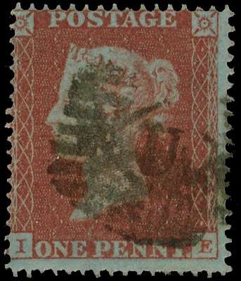 1850 1d Red brown “Archer“ Pl.105. Used example lettered IE cancelled by a black London City numeral. Very rare plate so fine. Spec. CE2. Cat £9000.