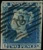 1855 2d Blue Pl.5 (LK, Wmk. Large Crown, Die I, Alphabet II). Imperforate example