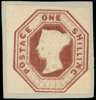 1847 1s Embossed. Very fine unused essay without pendant curl printed in brown on silk thread paper. Mounted on small pi…