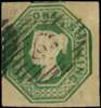 1854 1s Deep green (Die W.W.2). Used four margin example with only one silk thread variety, cancelled by a London City numeral. Light overall toning nevertheless scarce. SG56. Spec. H1(3)ca. Cat £2000.