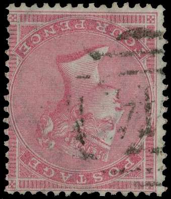 1856 4d Rose (Wmk. Medium garter inverted) Fine used example of this rare watermark variety lightly cancelled by a light…