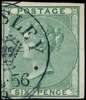 1856 6d Lilac plate proof. Very fine imperforate example printed in green on thin white unwatermarked card, cancelled by a Helmsley/Crown trial cancellation. Scarce.SG69. Cat. £7500