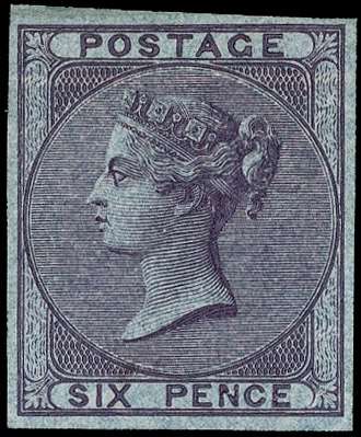 1856 6d Deep lilac (Thick highly glazed paper) Pl.1. Superb unused four margin imperforate imprimatur, lovely deep colour without any of the usual surface rubbing. Scarce one of only 24 possible examples in private hands. Ex Latto & Baillie. SG69. Cat. £6500