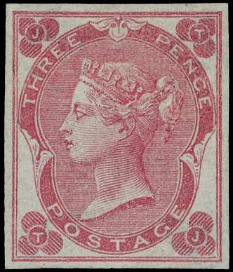 1862 3d Carmine-rose (Plate 2, State 2). Superb unused four margin imperforate imprimatur lettered TJ, lovely colour. Sc…