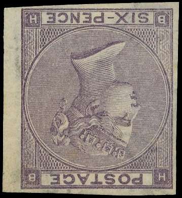 1862 6d lilac Pl.4 (Hair lines). Very fine unused o.g. imperforate example with watermark inverted lettered BH. Scarce. …
