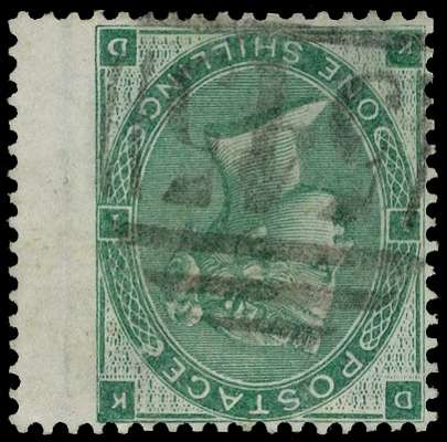 1862 1s Green Pl.1=2 (Wmk. inverted). Very fine used example lettered KD showing ‘K in white circle’ variety, neatly cance…