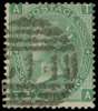 1865 1s Green Pl.4 (Wmk. Emblems). Good used example lettered TA showing error of watermark W20a ‘Three roses and a sham…