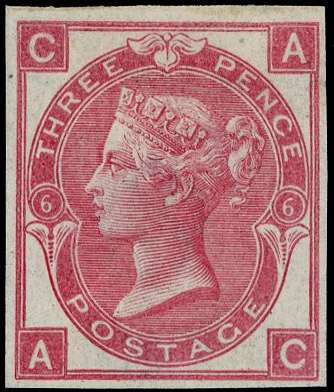 1870 3d Rose Pl.6. Very fine unused imperforate imprimatur lettered AC, small paper wrinkle at lower left. Scarce one of only 22 possible examples in private hands. SG103. Cat. £2500.