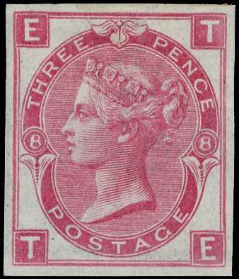 1872 3d Rose Pl.8. Very fine unused imperforate imprimatur lettered TE. Scarce one of only 22 possible examples in priva…