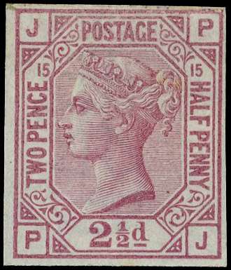 1879 2½d Rosy-mauve Pl.15. Very fine unused o.g. imperforate (close at upper right) imprimatur lettered PJ. Scarce one o…